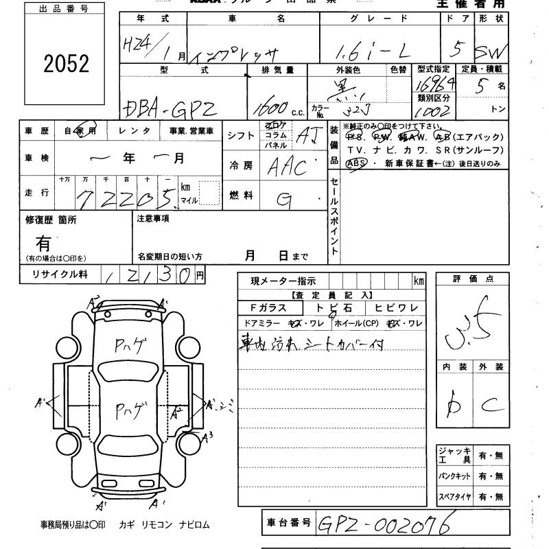 SUBARU IMPREZA SPORT 2012 г., лот № 2052