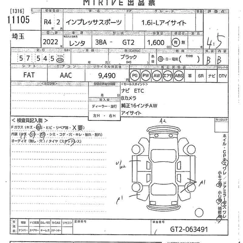 Статус продан Лот 11105 Аукцион MIRIVE Saitama Дата аукциона 04.02.2026