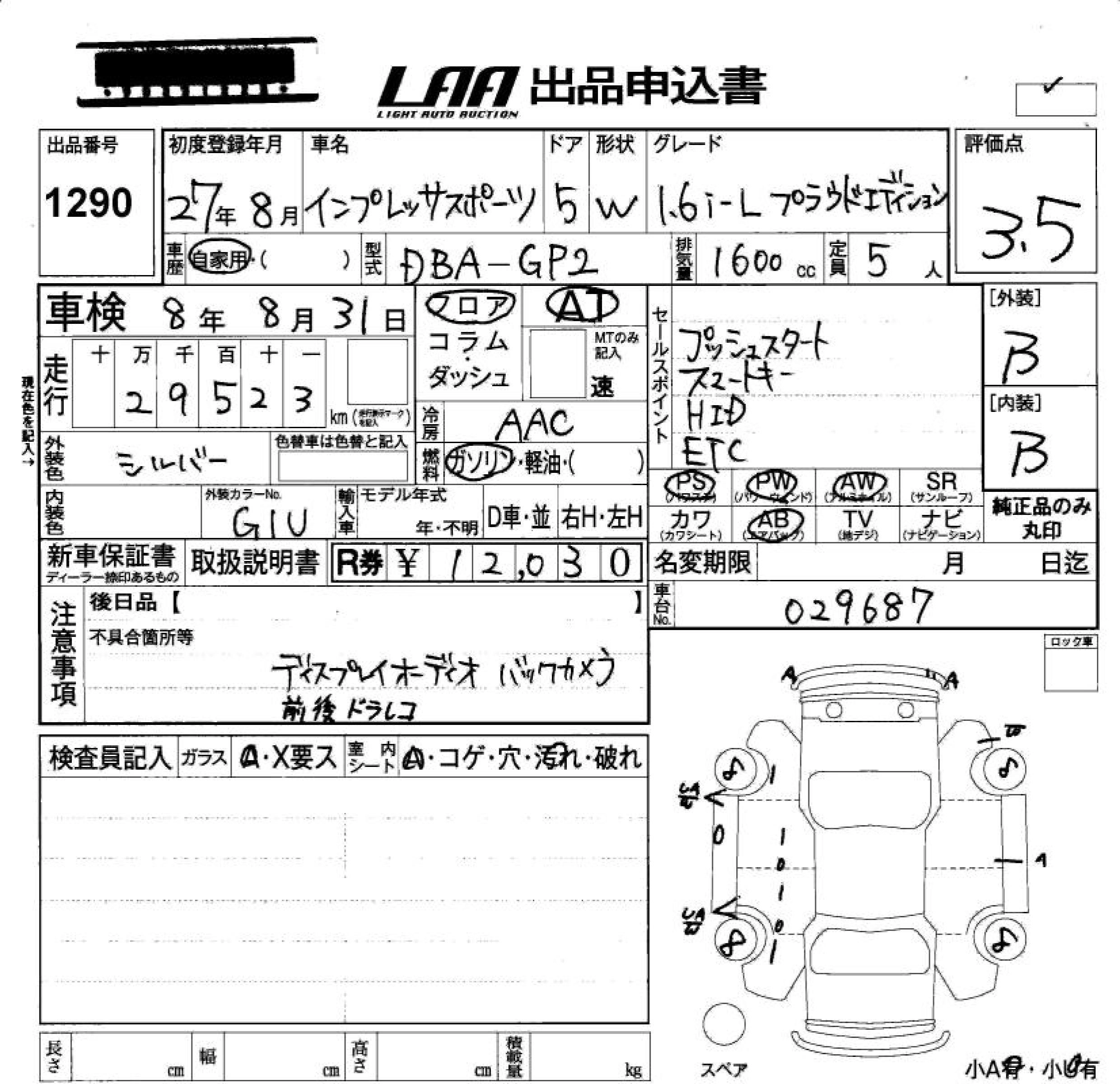 Статус не продан Лот 1290 Аукцион LAA Okayama Дата аукциона 06.02.2026