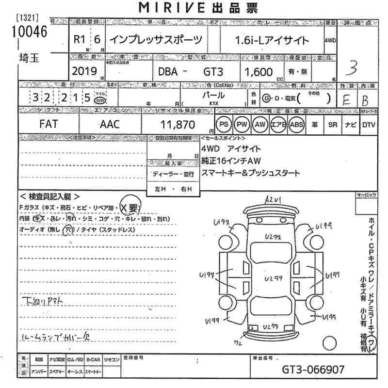 Статус выставлен на аукцион Лот 10046 Аукцион MIRIVE Saitama Дата аукциона 11.03.2026