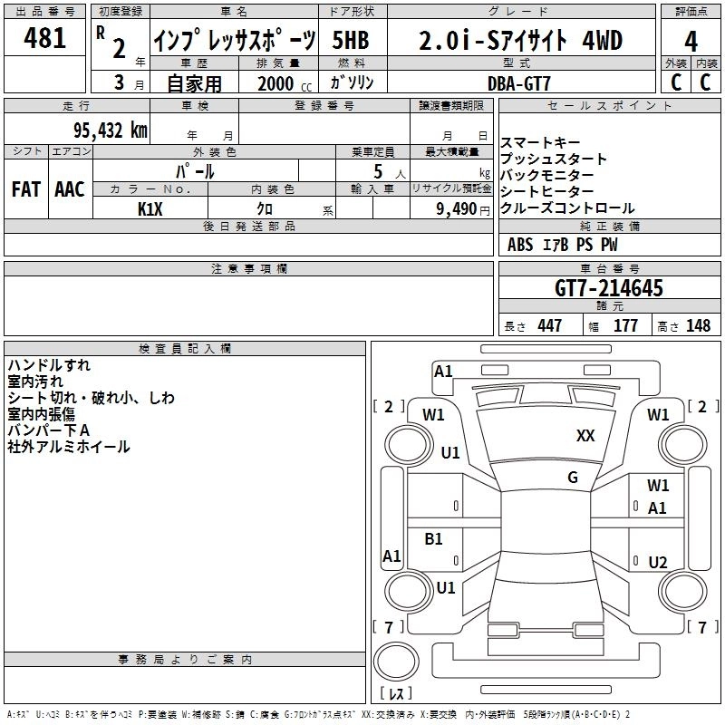 Год выпуска2020 Пробег 95 000 км КузовGT7 Комплектация2.0I-S EYESIGHT 4WD