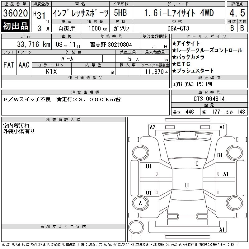 Год выпуска2019 Пробег 34 000 км КузовGT3 Комплектация1.6I-L EYESIGHT 4WD