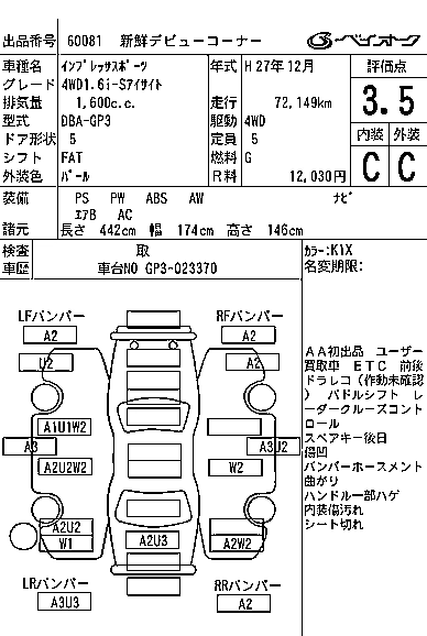 SUBARU IMPREZA SPORT 2015 г., лот № 60081