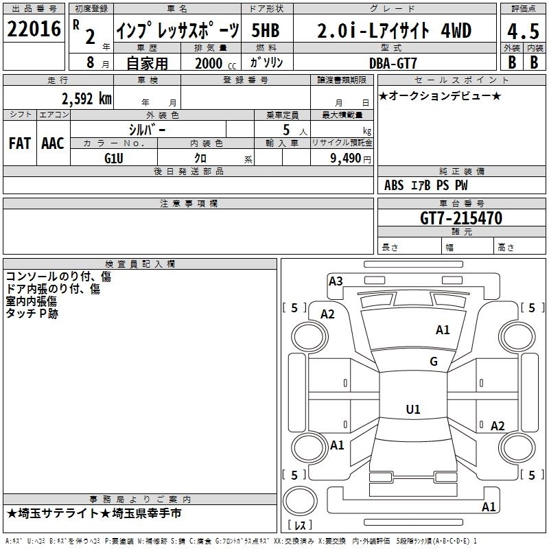 SUBARU IMPREZA SPORT 2020 г., лот № 22016