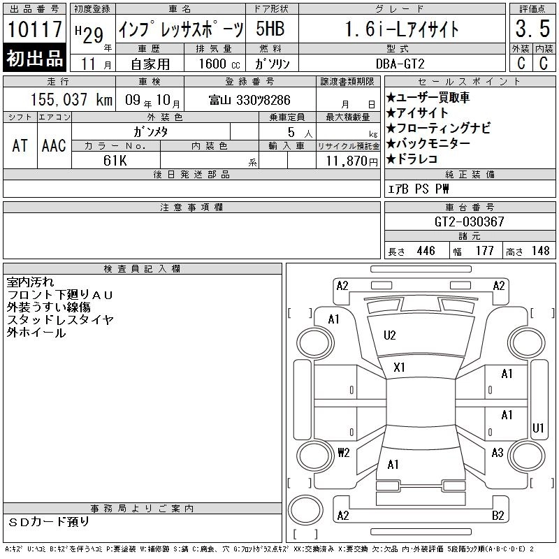 Год выпуска2017 Пробег 155 000 км КузовGT2 Комплектация1.6I-L EYESIGHT