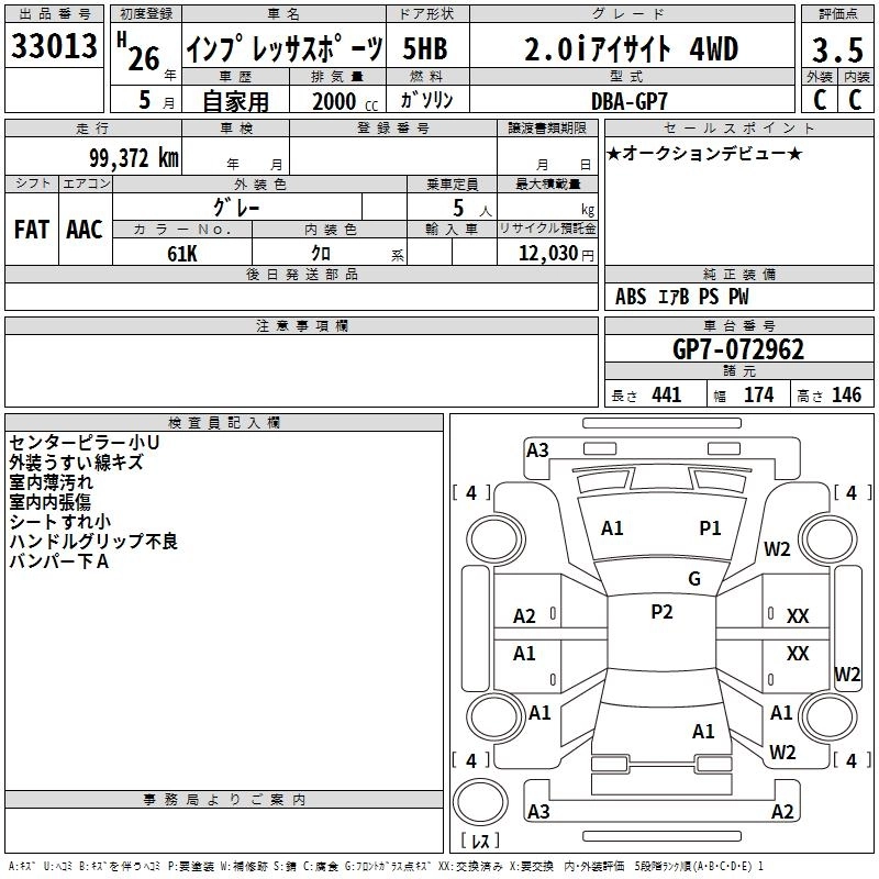 SUBARU IMPREZA SPORT 2014 г., лот № 33013