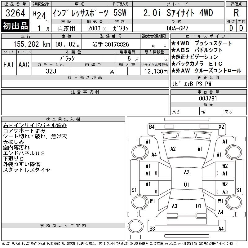 Год выпуска2012 Пробег 155 000 км КузовGP7 Комплектация2.0I-S EYESIGHT 4WD
