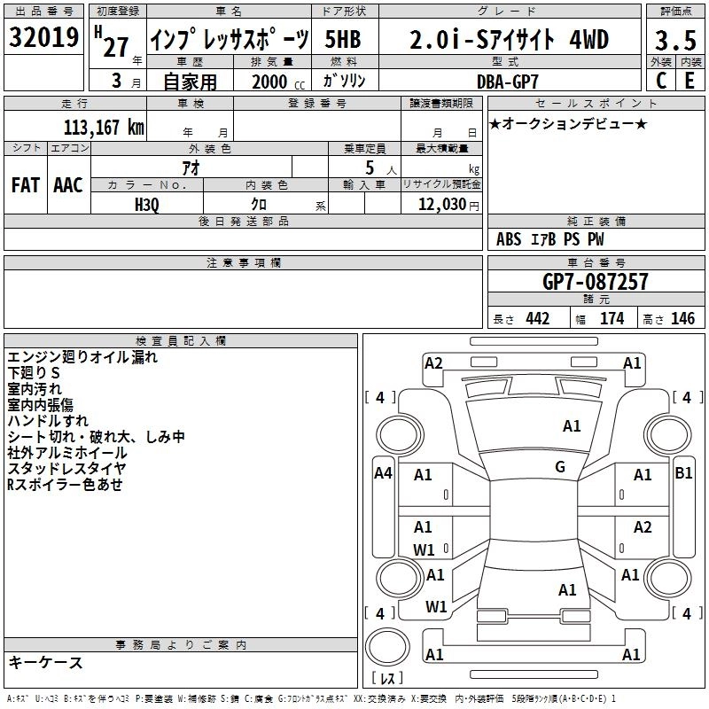 Год выпуска2015 Пробег 113 000 км КузовGP7 Комплектация2.0I-S EYESIGHT 4WD