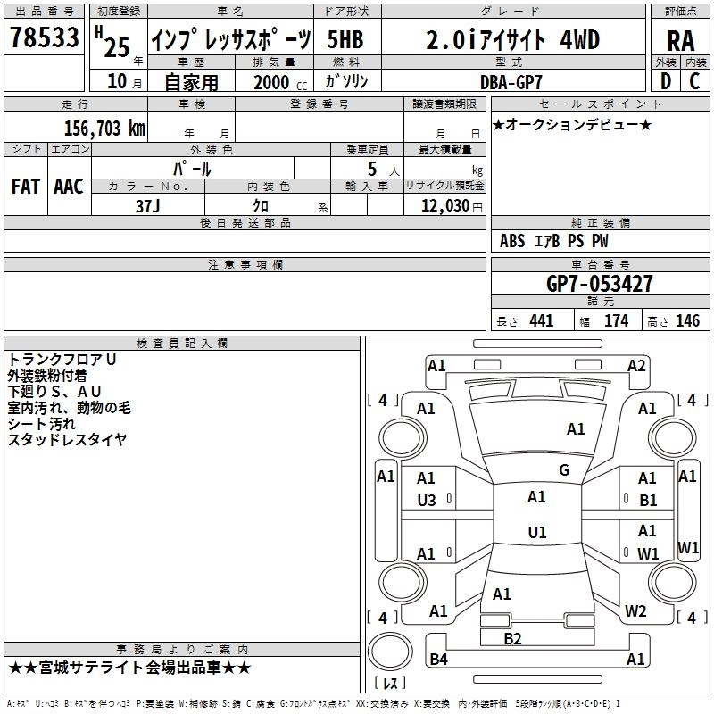 SUBARU IMPREZA SPORT 2013 г., лот № 78533