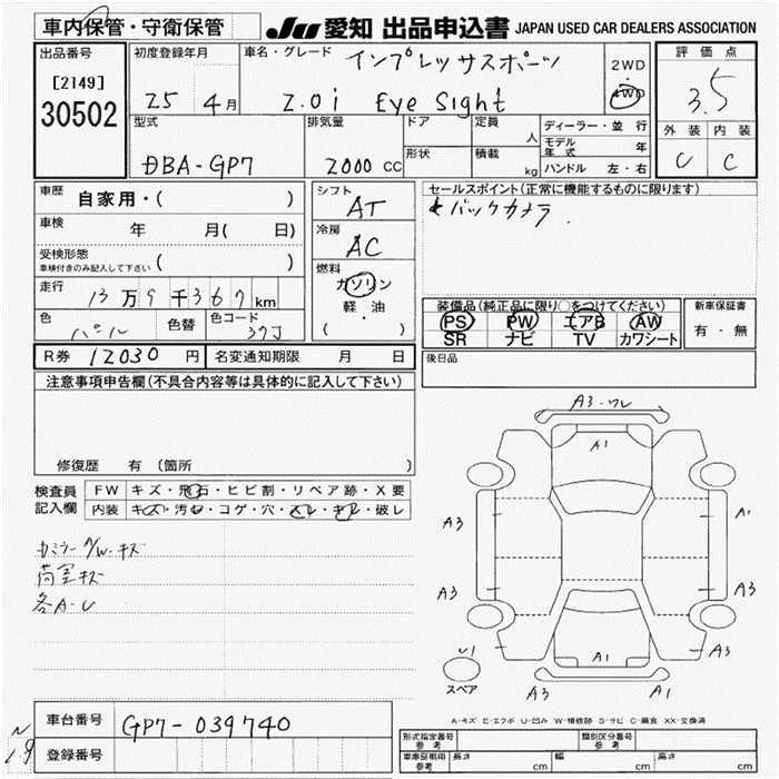 Год выпуска2013 Пробег 139 000 км КузовGP7 Комплектация2.0I EYESIGHT 4WD