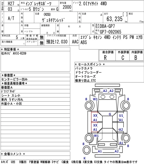 SUBARU IMPREZA SPORT 2015 г., лот № 4004