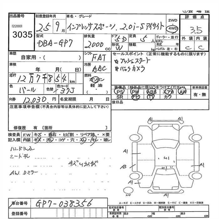 Год выпуска2013 Пробег 128 000 км КузовGP7 Комплектация4WD 2.0I-S EYESIGHT