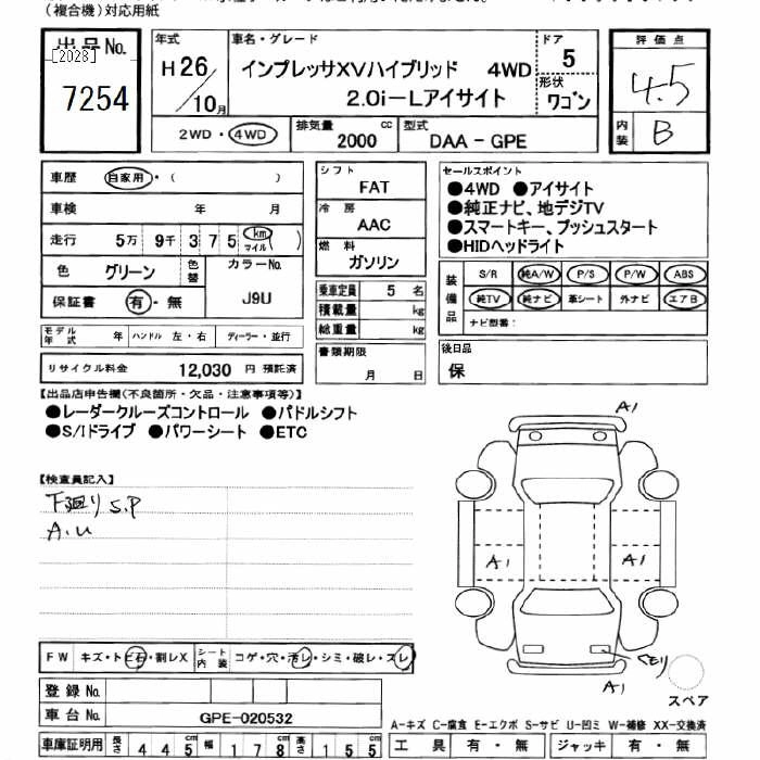 Год выпуска2014 Пробег 59 000 км КузовGPE Комплектация4WD HYBRID 2.0I-L EYESIGHT