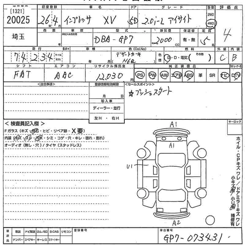 Год выпуска2014 Пробег 74 000 км КузовGP7 Комплектация2.0I-L EYESIGHT