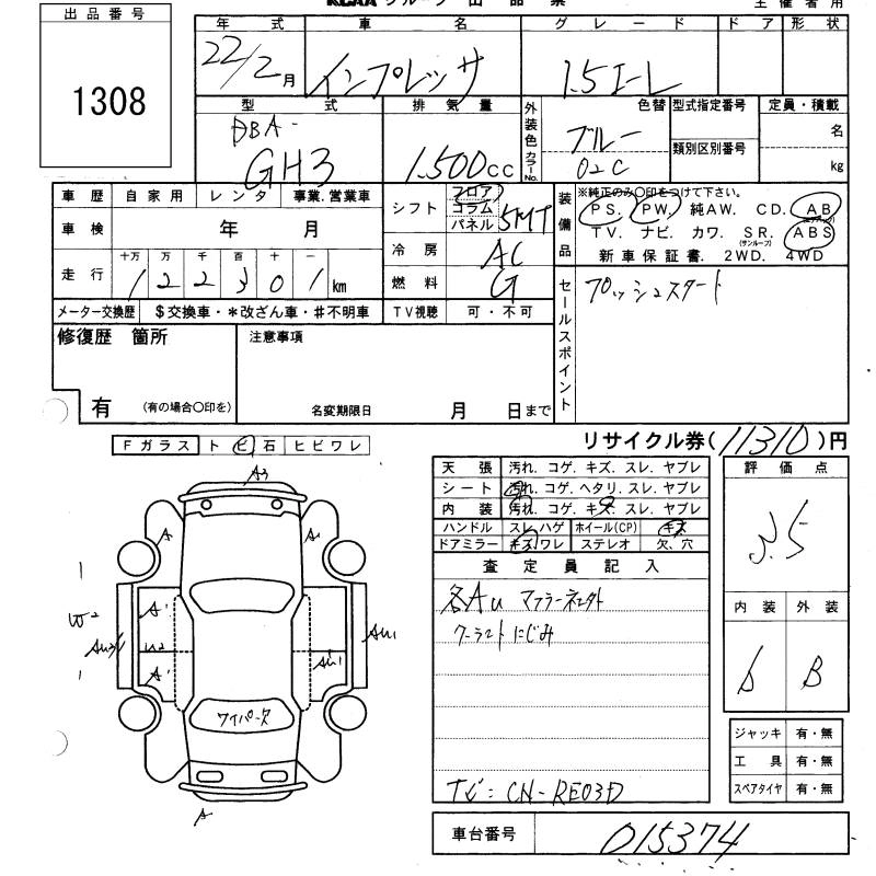 SUBARU IMPREZA 2010 г., лот № 1308