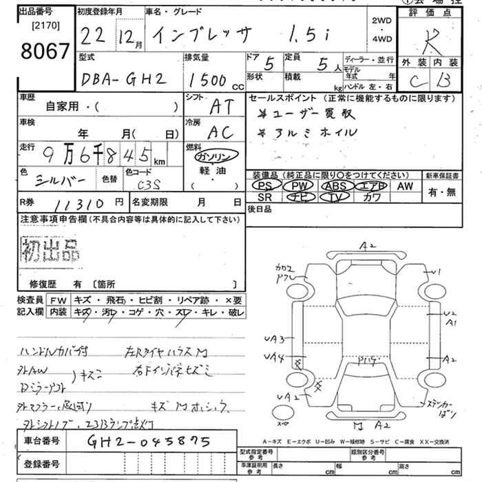 SUBARU IMPREZA 2010 г., лот № 8067