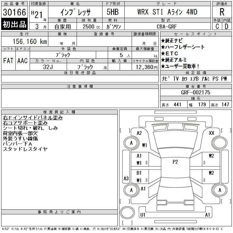 Год выпуска2009 Пробег 156 000 км КузовGRF КомплектацияWRX STI A LINE 4WD
