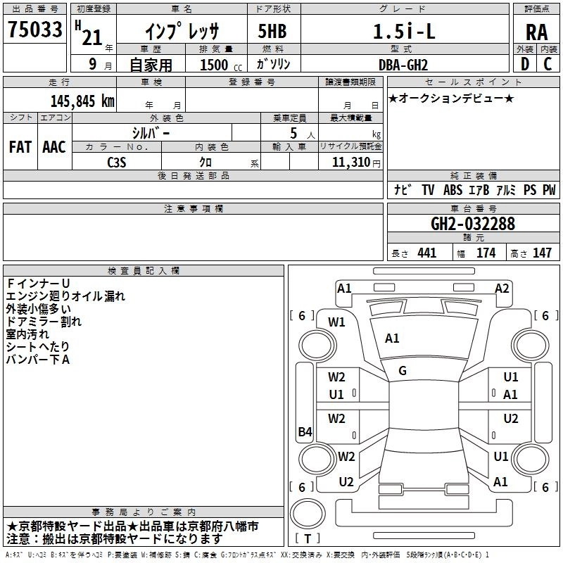SUBARU IMPREZA 2009 г., лот № 75033