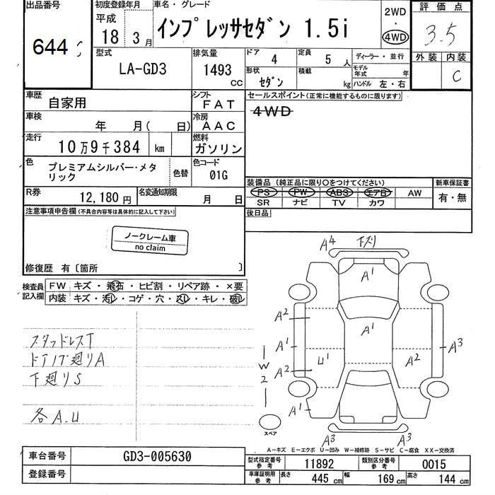 SUBARU IMPREZA 2006 г., лот № 644