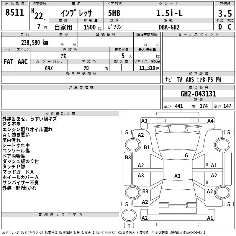 SUBARU IMPREZA 2010 г., лот № 8511