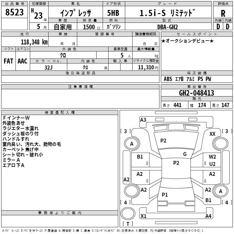 SUBARU IMPREZA 2011 г., лот № 8523