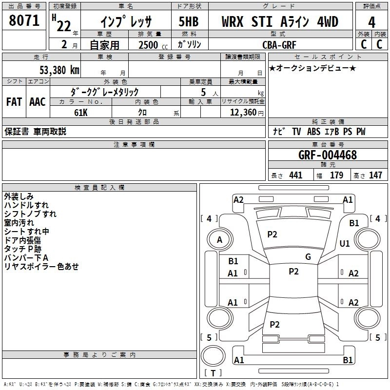 Год выпуска2010 Пробег 53 000 км КузовGRF КомплектацияWRX STI A LINE 4WD