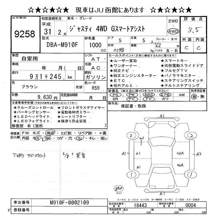 Год выпуска2019 Пробег 91 000 км КузовM910F Комплектация4WD G SMART ASSIST