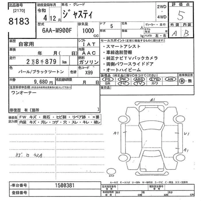 SUBARU JUSTY 2022 г., лот № 8183
