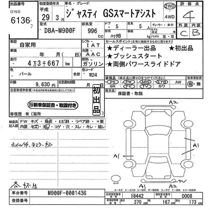 SUBARU JUSTY 2017 г., лот № 6136