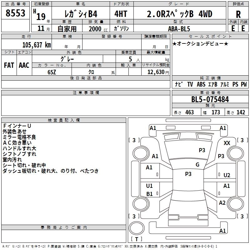 Год выпуска2007 Пробег 106 000 км КузовBL5 Комплектация2.0R SPECIFICATIONS B 4WD