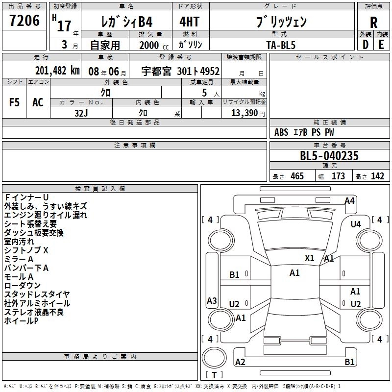 SUBARU LEGACY B4 2005 г., лот № 7206