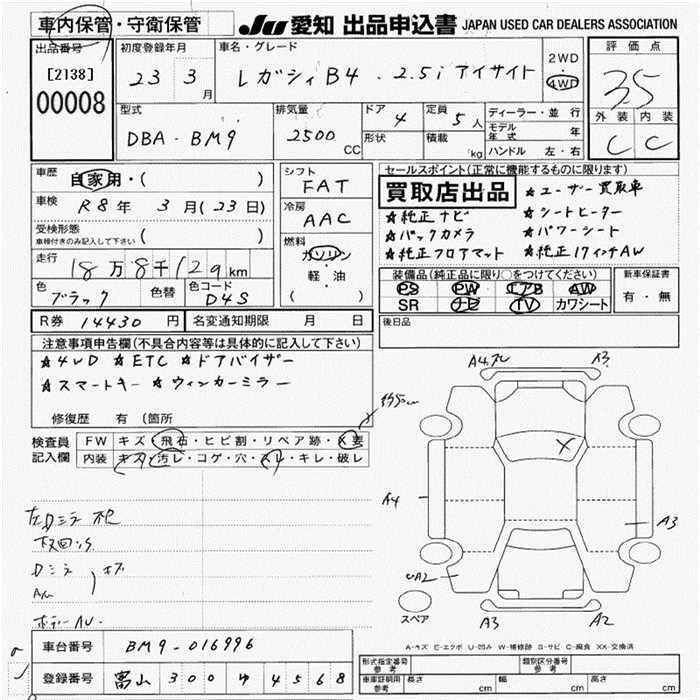 Год выпуска2011 Пробег 188 000 км КузовBM9 Комплектация2.5I EYESIGHT 4WD