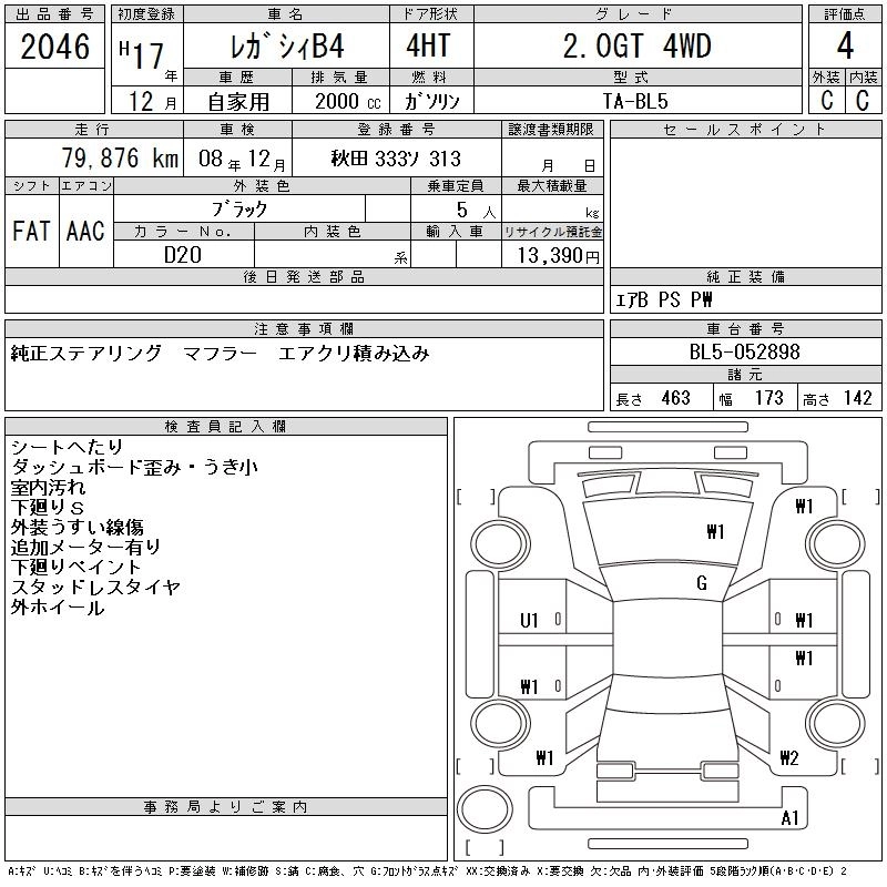 SUBARU LEGACY B4 2005 г., лот № 2046