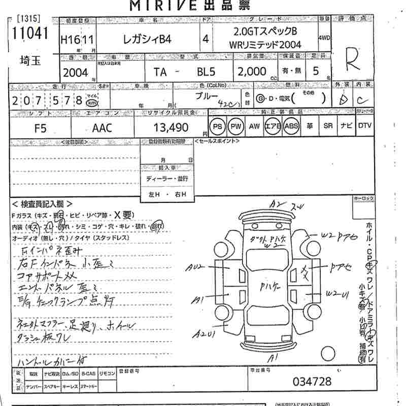 SUBARU LEGACY B4 2004 г., лот № 11041