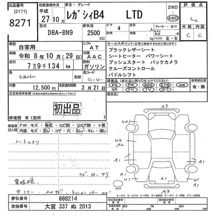 Статус выставлен на аукцион Лот 8271 Аукцион JU Tokyo Дата аукциона 02.02.2026