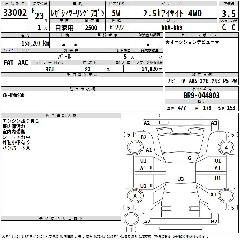 SUBARU LEGACY TOURING WAGON 2011 г., лот № 33002