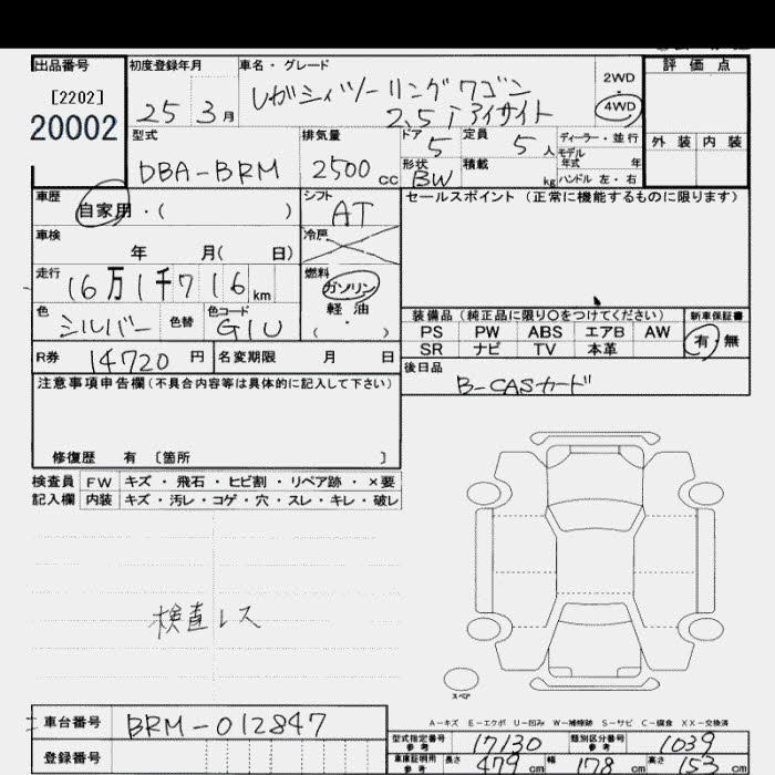 Год выпуска2013 Пробег 162 000 км КузовBRM Комплектация4WD 2.5I EYESIGHT