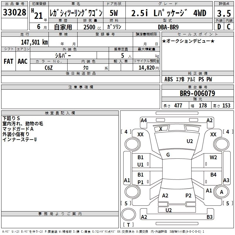Год выпуска2009 Пробег 148 000 км КузовBR9 Комплектация2.5I L PACKAGE 4WD