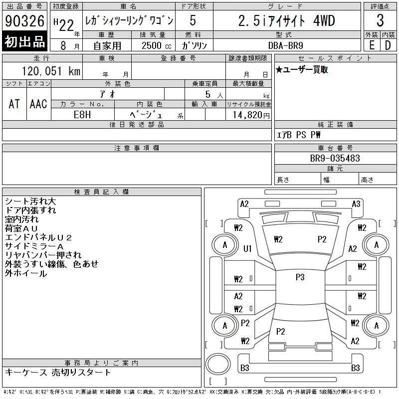 Год выпуска2010 Пробег 120 000 км КузовBR9 Комплектация2.5I EYESIGHT 4WD