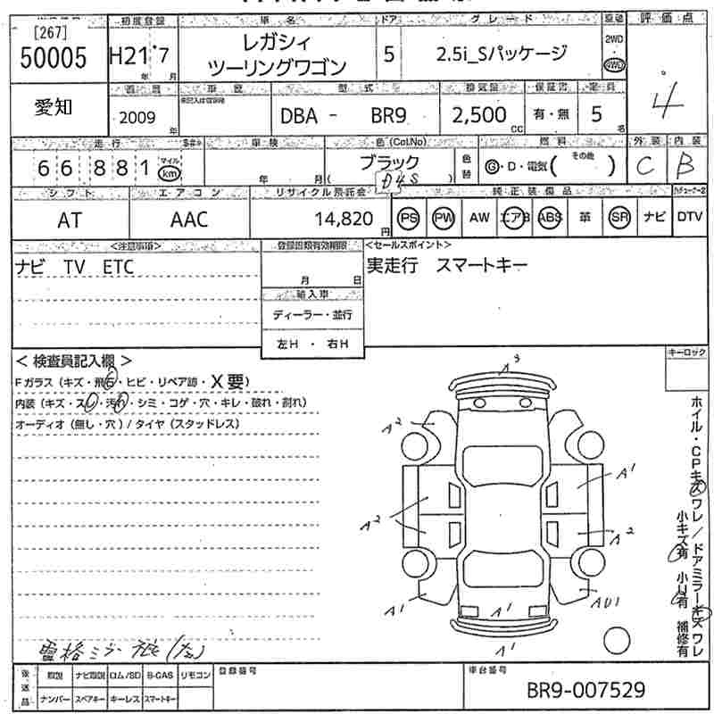 SUBARU LEGACY TOURING WAGON 2009 г., лот № 50005