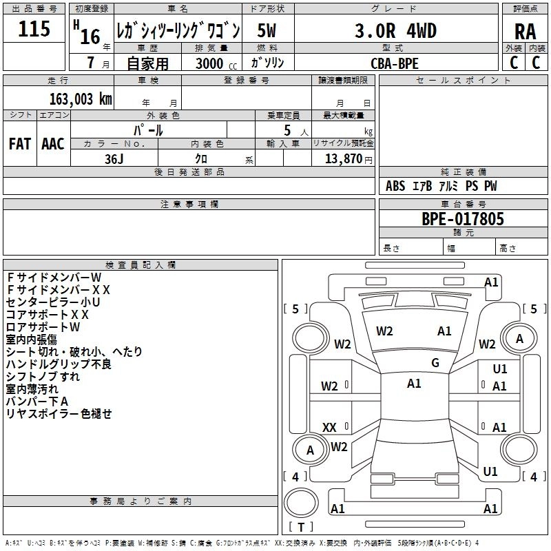 SUBARU LEGACY TOURING WAGON 2004 г., лот № 115