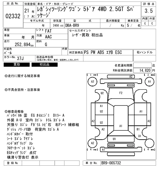 Год выпуска2009 Пробег 253 000 км КузовBR9 Комплектация2.5GT S PACKAGE
