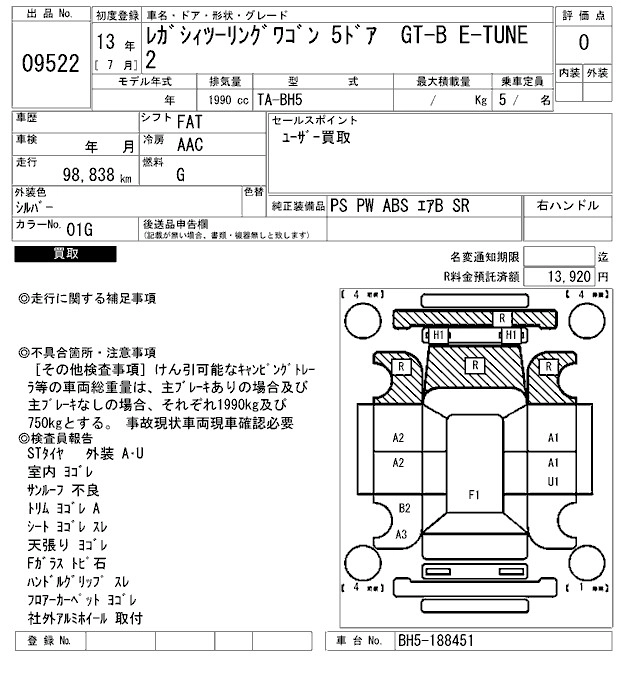 Год выпуска2001 Пробег 99 000 км КузовBH5 КомплектацияGT-B E-TUNE2