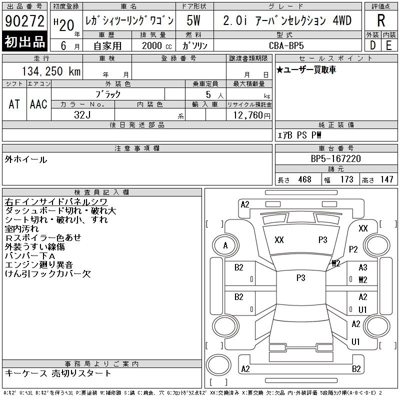 SUBARU LEGACY TOURING WAGON 2008 г., лот № 90272