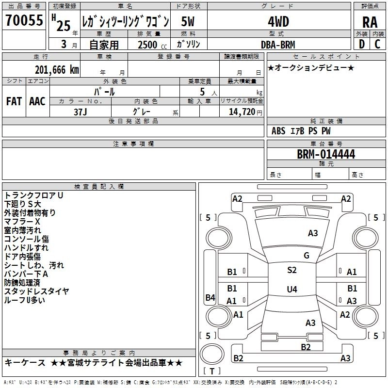 SUBARU LEGACY TOURING WAGON 2013 г., лот № 70055