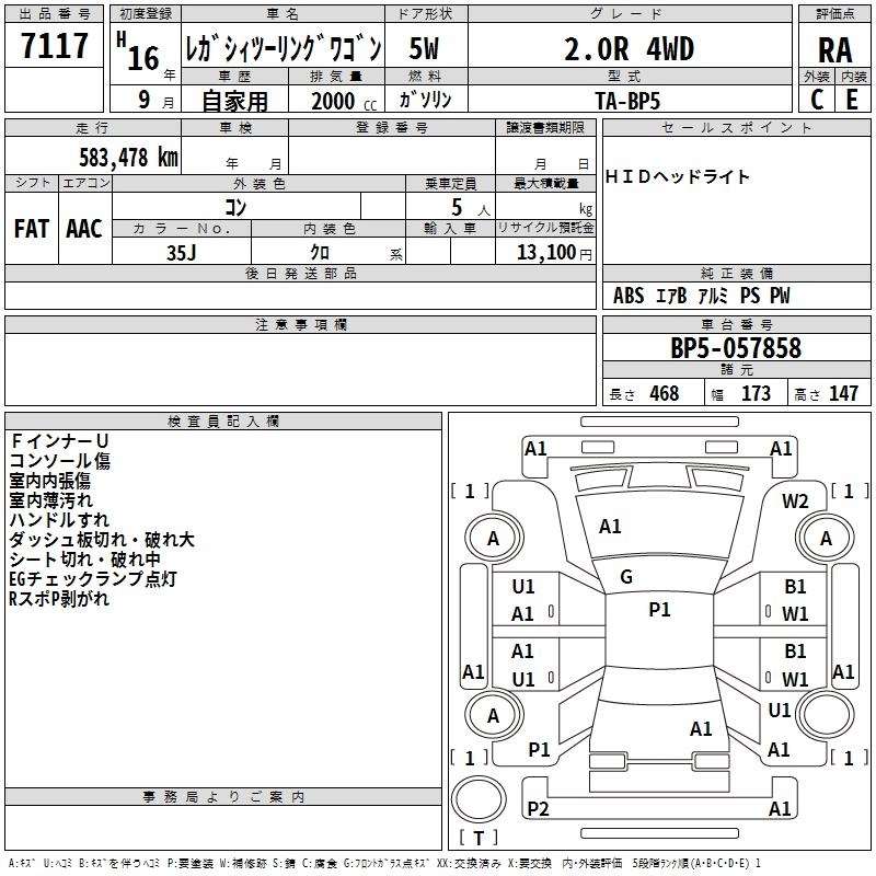 Год выпуска2004 Пробег 583 000 км КузовBP5 Комплектация2.0R 4WD
