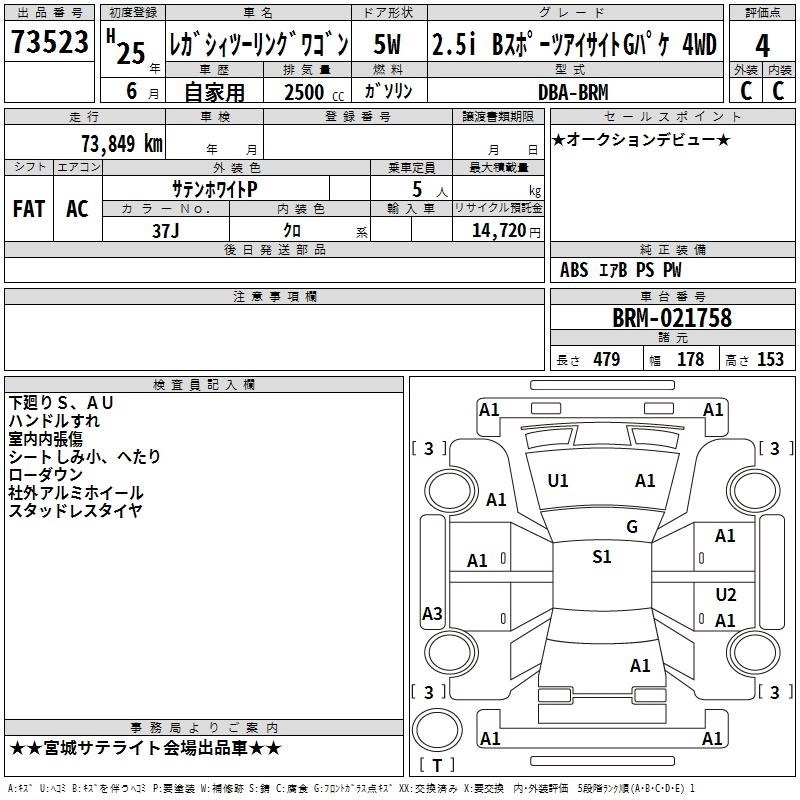 SUBARU LEGACY TOURING WAGON 2013 г., лот № 73523