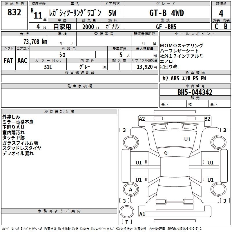 Год выпуска1999 Пробег 74 000 км КузовBH5 КомплектацияGT-B 4WD