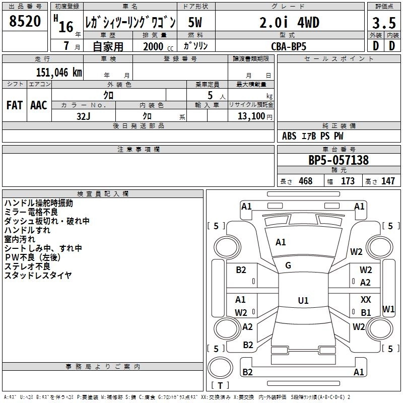 Год выпуска2004 Пробег 151 000 км КузовBP5 Комплектация2.0i 4WD