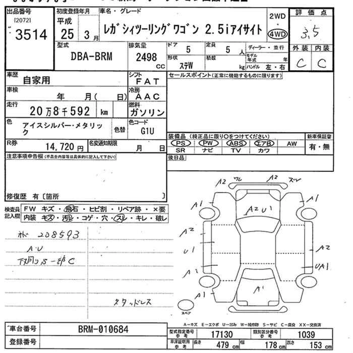 Год выпуска2013 Пробег 209 000 км КузовBRM Комплектация4WD 2.5I EYESIGHT